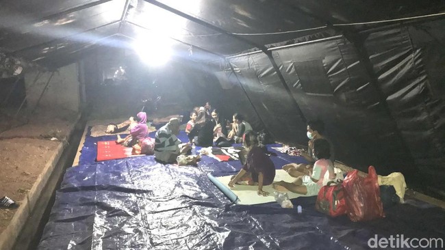 Pantauan detikcom di lokasi pukul 19.00 WIB, tampak sekitar 50 lebih orang sudah mengungsi ke posko sementara yang berukuran 5x3 meter itu. Beberapa di antaranya anak-anak. Terlihat barang-barang bawaan warga pengungsi bertumpuk di dalam tenda.