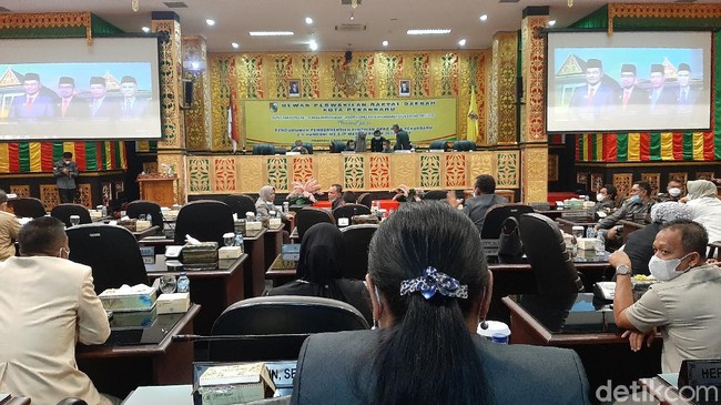 "Pengumuman pemberhentian pimpinan DPRD Pekanbaru atas nama Hamdani masa jabatan 2019-2024. Menjatuhkan sanksi mengusulkan pemberhentian sebagai alat kelengkapan pimpinan DPRD," ucap Ginda saat rapat, Senin (2/11/2021).