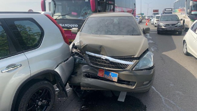 "Datang kendaraan ke-5 tidak bisa menjaga jarak aman sehingga menabrak kendaraan ke-4 dan beruntun," jelas Sutikno.