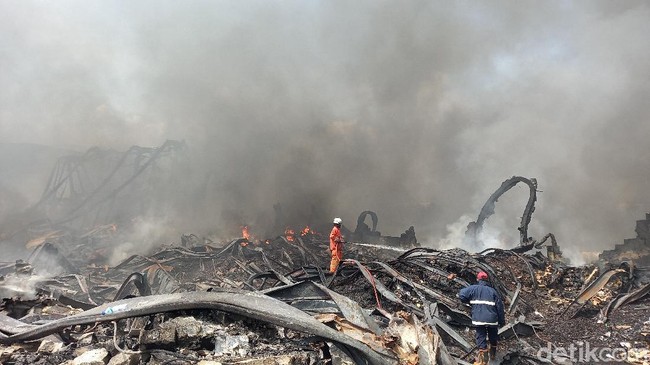 Sementara itu, komandan pos Damkar Pakuhaji Azhari Almahi mengatakan titik api kecil yang masih menyala ini tertimbun reruntuhan gedung, sehingga perlu dilakukan penyisiran.