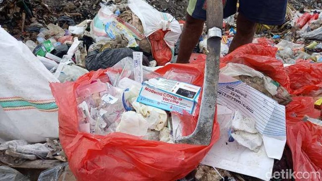 Pantauan di TPA di Desa Lune, Kecamatan Pajo, Dompu, tampak jarum suntik bekas, botol infus, botol obat, sarung tangan, hingga masker berserakan. Selain itu, ada beberapa bekas botol vaksin COVID-19.