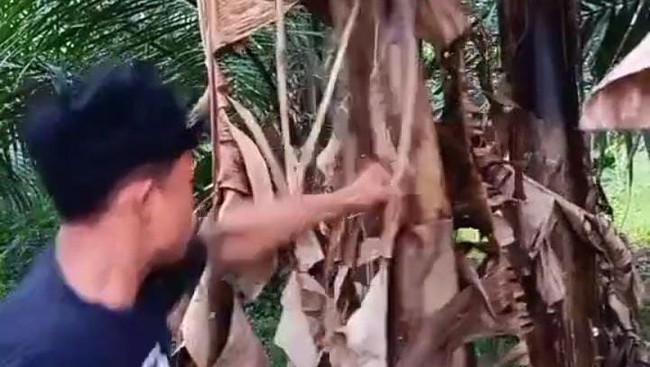 Paris pun meninju pohon pisang hingga tumbang. Dia tidak lupa mengucapkan salam khas sebelum memukul pohon pisang itu.