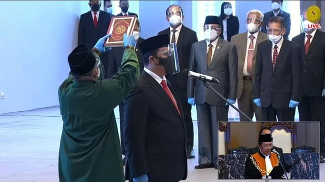 Setelah itu, acara dilanjutkan dengan pengucapan sumpah jabatan Nyoman Adhi. Pengucapan sumpah jabatan itu dipandu Ketua MA.
