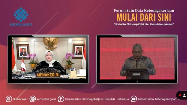 "Penyelenggaraan Forum Satu Data Ketenagakerjaan ini memang harus kita lakukan karena amanat dari pasal 13 ayat (2) Peraturan Menteri Ketenagakerjaan Nomor 15 Tahun 2020 tentang Satu Data Ketenagakerjaan," ucap Ida dalam keterangan tertulis, Kamis (4/11/2021).