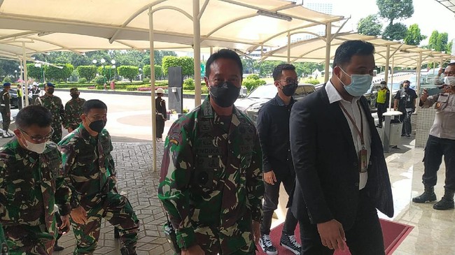 Pantauan detikcom, Sabtu (6/11/2021), Andika tiba di Gedung Nusantara II, DPR RI, Senayan, Jakarta Pusat, sekitar pukul 09.49 WIB. Andika turun dari mobil dinas berwarna hijau.