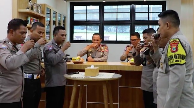 Kepala Badan Pemelihara Keamanan (Kabaharkam), Komjen Arief Sulistyanto menjamu 12 Bhabinkamtibmas berprestasi dengan secangkir kopi racikannya. Tak hanya itu, kedua belas Bhabinkamtibmas juga diajak patroli udara dengan helikopter.
