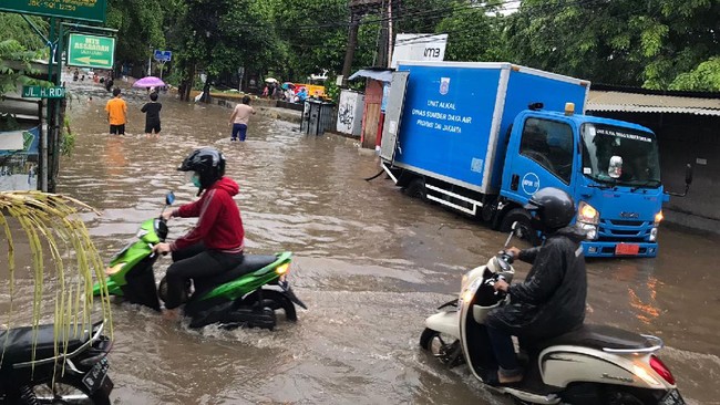 Banjir menggenangi jalanan di kawasan Ulujami, Pesanggrahan, Jakarta Selatan (Jaksel). Imbasnya, lalu lintas di kawasan itu pun dialihkan.