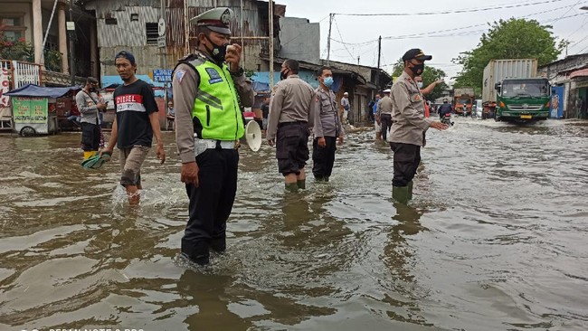 "Adapun titik-titik yang rawan terdapat genangan air di wilayah hukum Polsek Kawasan Sunda Kelapa. (Petugas) memantau ketinggian air di titik-titik lokasi genangan air. Melaksanakan koordinasi dengan petugas IPC, Dinas Tata air, petugas damkar (pemadam kebakaran)," tulis Kapolsek Sunda Kelapa AKP Seto Handoko Putra dalam keterangan tertulis, Minggu (7/11/2021).