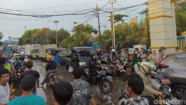 Meski demikian, kendaraan roda empat masih bisa melintas baik masuk maupun keluar pelabuhan. Sementara pengendara motor diminta memutar arah.