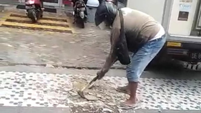 "Dia toki (hancurkan) itu (trotoar), semua kaget. Lalu pria itu bilang, 'Kalau berani, datang, lapor saya'. Gara-gara ini (trotoar), istrinya sakit, dia bilang gitu," lanjutnya.