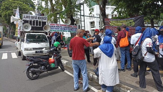 "(Harapan) semua tuntutan dipenuhi. Segera pecat menteri yang bisnis PCR, tidak dibenarkan secara moral dia, konsep beragama dan juga berpancasila. Rakyat bukan marah lagi tapi sudah murka karena bisnis tersebut. Kita minta Jokowi bicara jangan hanya diam saja," ujar Ato.