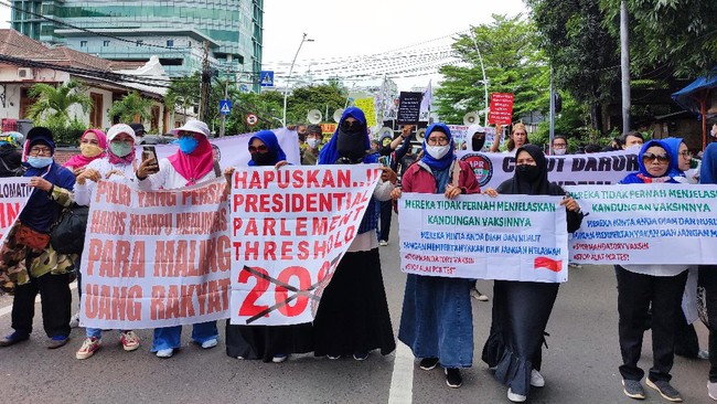 "(Harapan) Semua tuntutan dipenuhi. Segera pecat menteri yang bisnis PCR, tidak dibenarkan secara moral dia, konsep beragama dan juga berpancasila. Rakyat bukan marah lagi tapi sudah murka karena bisnis tersebut. Kita minta Jokowi bicara jangan hanya diam saja," ujar Ato.