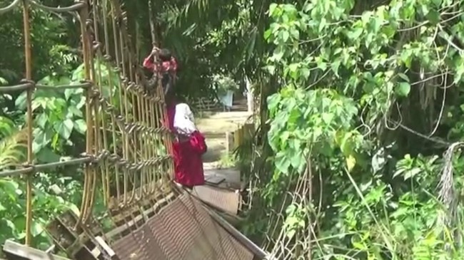 Dia mengatakan anak-anak dan warga harus memegang tali jembatan yang masih ada. Warga yang melintas harus berjalan pelan-pelan melewati tali jembatan.