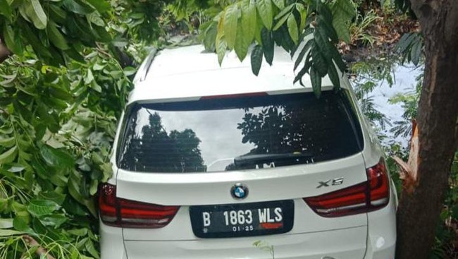 Sebuah mobil BMW X5 terperosok ke parit di Jl Outer Ringroad, Kembangan, Jakarta Barat. Mobil tersebut terperosok setelah menghindari kendaraan lain yang tiba-tiba putar balik.