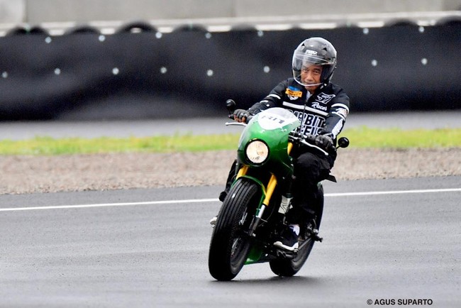 Jokowi juga mengaku tidak berani untuk memacu sepeda motornya kencang-kencang. Hal itu dikarenakan kondisi lintasan yang basah akibat diguyur hujan.