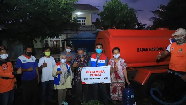 Area Manager Communication, Relations, & CSR PT Kilang Pertamina Internasional Unit Cilacap, Cecep Supriyatna menjelaskan bantuan air bersih yang diberikan bekerja sama Badan Penanggulangan Bencana Daerah (BPBD) Kabupaten Cilacap sebanyak 2 tangki atau sebanyak 10 ribu liter. Bantuan ini disalurkan di RT 04 RW 20 Kelurahan Donan, Kecamatan Cilacap Tengah.
