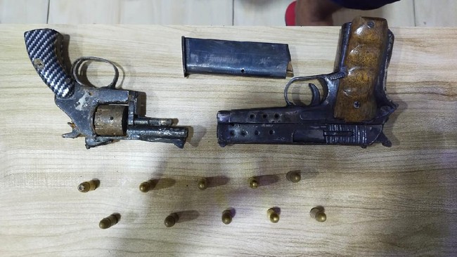"Dengan penambahan dua senjata yang kita temukan kemarin, maka kita sudah menemukan tiga senjata api, dengan rincian dua senpi jenis FN dan satu jenis revolver," ujar Mahmun.