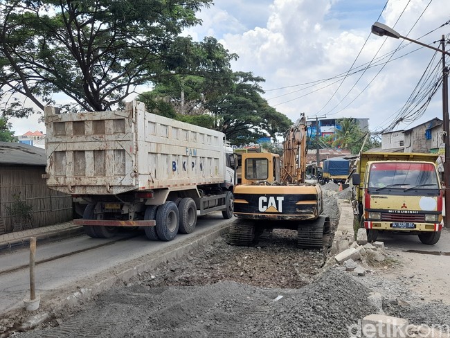 Berdasarkan pantauan detikcom di lokasi, Selasa (16/11/2021) siang, perbaikan jalan dimulai di ruas dekat Markas Polsubsektor Kosambi, Kabupaten Tangerang, Provinsi Banten.
