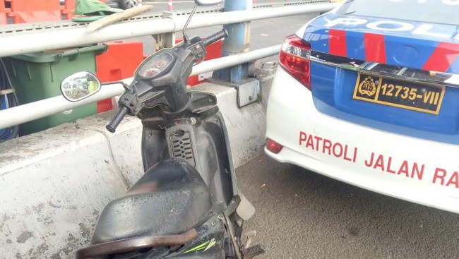 OS terus memacu motornya hingga akhirnya disetop di Tol Semanggi 1. Petugas kemudian memeriksa OS.