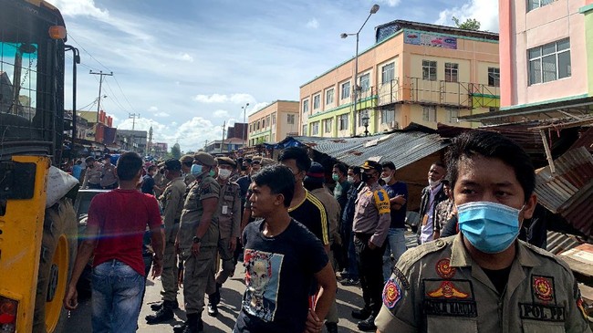 "Jangan perlakukan kami seperti ini, kami juga punya dasar jualan di sini. Kami rutin dikutip retribusi di pasar ini," kata seorang pedagang.