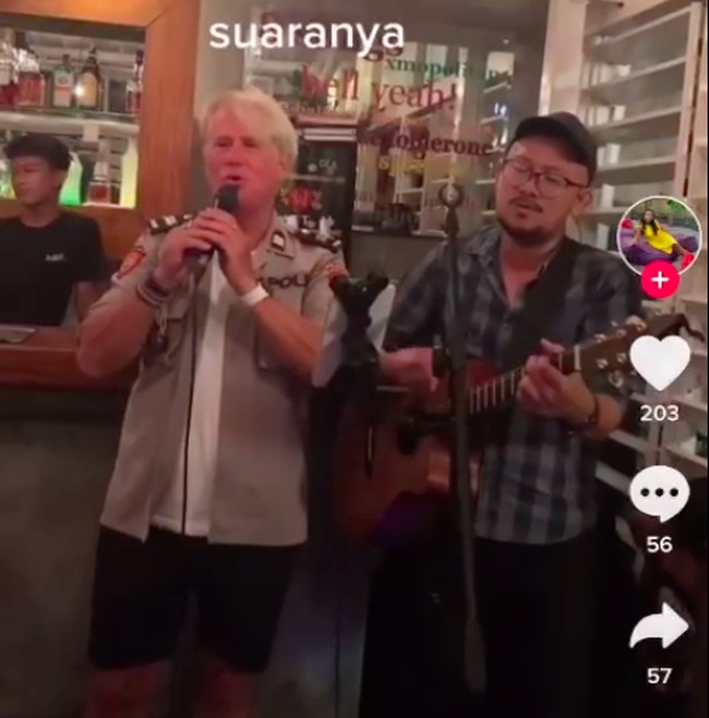Seorang warga negara asing (WNA) di Bali bernyanyi di sebuah kafe dengan mengenakan baju mirip instansi Polri viral di media sosial (medsos) Tiktok. Polisi pun turun tangan menangani video viral tersebut.