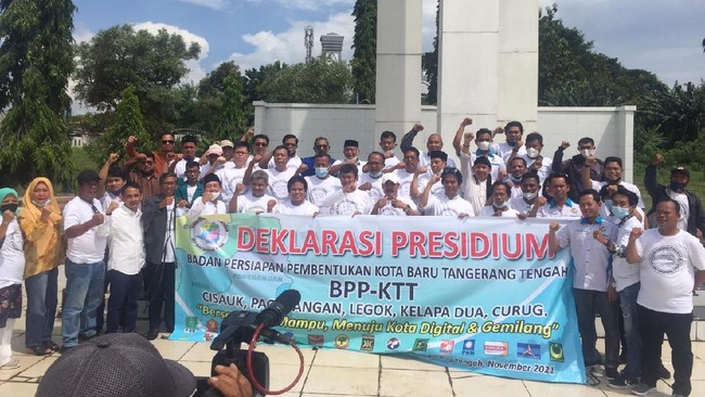 Puluhan warga mendeklarasikan diri untuk pemekaran daerah baru Kota Tangerang Tengah. Warga tersebut berasal dari lima kecamatan yang berbeda di Kabupaten Tangerang, Banten.