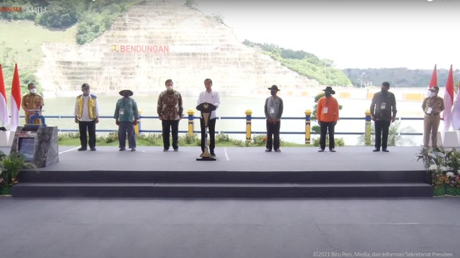 Presiden Joko Widodo (Jokowi) meresmikan Bendungan Karalloe, Gowa, Sulawesi Selatan (Sulsel). Bendungan yang dibangun dengan anggaran Rp 1,27 triliun ini akan mengurangi banjir dan mengaliri 7.000 hektare lahan pertanian di Jeneponto dan membuat petani di wilayah itu bisa panen 3 kali dalam setahun.