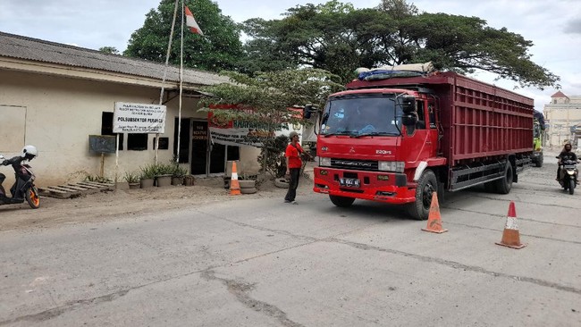 Truk harus menunggu di depan Pos Polsubsektor Perancis. Sopir mematikan kendaraan saat menunggu giliran. Ada satu orang yang tak berseragam mengatur truk-truk itu sambil membawa baskom untuk diisi uang oleh sopir.