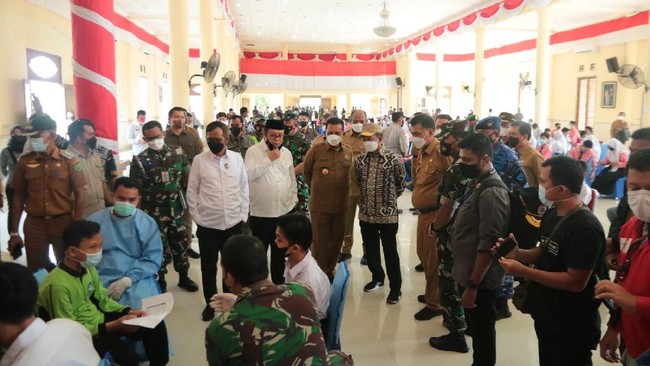 "Tadi saya melihat yang sudah vaksinasi tahap satu sekitar 90 persen atau 92, kemudian yang sudah dua kali sekitar 86-87. Target kita nasional 70 (persen) akhir tahun ini sudah bagus," tuturnya.