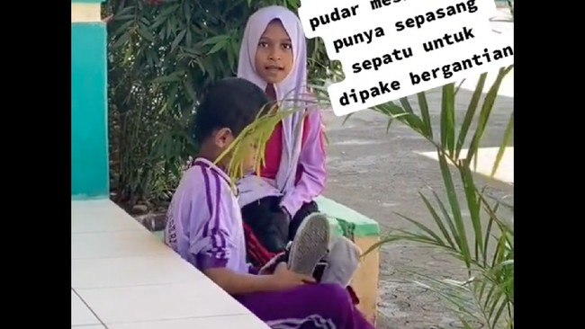 Viral di media sosial kakak-adik di Kota Baubau, Sulawesi Tenggara (Sultra), bergantian sepatu demi masuk ke sekolah. Salah satu dari mereka memang tidak memiliki sepatu sehingga harus bergantian dengan saudaranya.