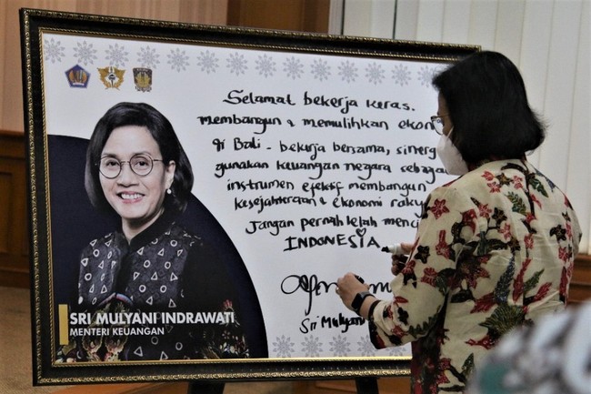Menteri Keuangan Republik Indonesia Sri Mulyani meninjau kesiapan pelaksanaan G20 di Bali beberapa waktu lalu. Dia berpesan agar jajaran Kemenkeu di Bali dapat bekerja keras membantu pemerintah memulihkan perekonomian yang terpuruk akibat pandemi COVID-19.