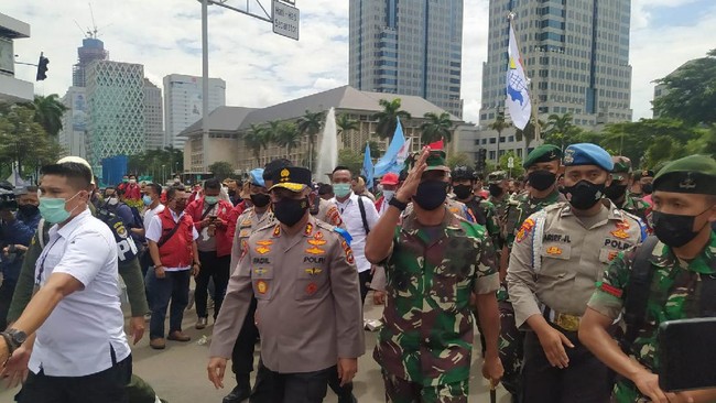Pantauan detikcom, Kamis (25/11/2021), Irjen Fadil tiba di tengah massa buruh pada pukul 12.46 WIB. Fadil ditemani oleh Pangdam Jaya Mayjen Mulyo Aji dan Kapolres Metro Jakpus Kombes Hengki Haryadi.