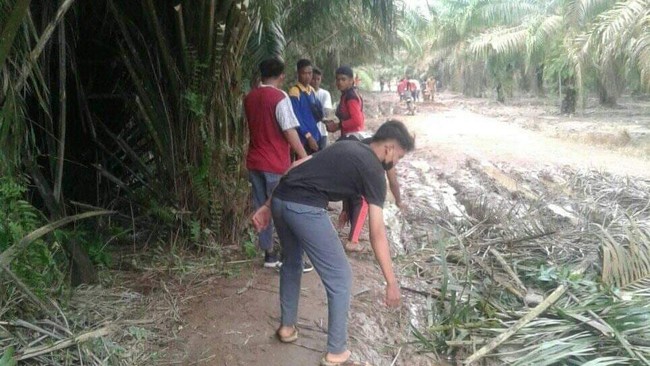 Heni mengatakan jalan tersebut memang berlumpur sejak setahun terakhir. Dia mengatakan para siswanya itu memperbaiki ruas jalan Desa Rawa Banda pada Senin (21/11).