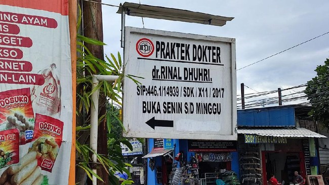 dokter Rinal membuka praktik di Jalan Jatimulya Nomor 30, Cilodong, Kota Depok, Sabtu, (27/11/2021). Tempat dokter Rinal praktek seperti pada klinik lainnya di depan ada plang yang bertuliskan "Praktek Dokter. dr Rinal Dhuhri. SIP: 446.1/14939/SDK/X11/2017. Buka Senin s/d Minggu".