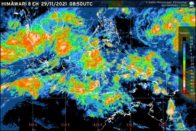 "Sistem Bibit Siklon Tropis 94W bergerak ke arah barat dan menjauhi wilayah Indonesia, dan dalam 24 jam ke depan masih berada pada kategori rendah untuk menjadi sistem Siklon Tropis," kata Deputi Bidang Meteorologi BMKG, Guswanto, Senin (29/11/2021).