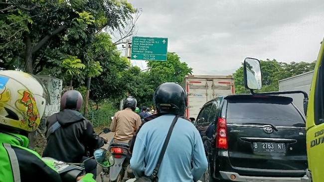 Sementara itu, jalur arah Jakarta juga tersendat di lokasi ini dikarenakan adanya pembagian jalur kendaraan. Di lokasi pembangunan terdapat beberapa petugas kepolisian dan Dishub yang mengatur arus lalu lintas kendaraan. Beberapa pekerja proyek juga membantu mengatur arus lalu lintas agar kendaraan dapat melintas.