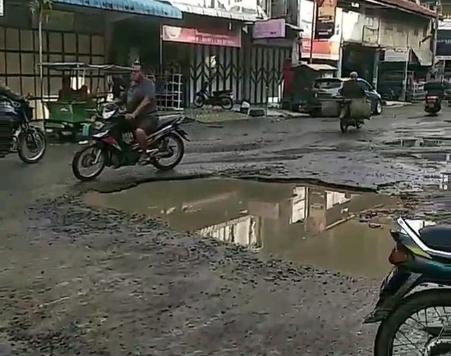 Dilihat detikcom, Selasa (30/11/2021), video itu diunggah oleh akun Instagram @dickeyfoliza. Jalanan di wilayah itu terlihat dipenuhi lubang berukuran kecil hingga besar dan tergenang air.