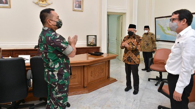 "Yang dikemukakan oleh Bapak KSAD ini memang sejalan dengan pikiran Bapak Wapres, dan dengan Bapak Andika ternyata gagasannya sama. Jadi, antara gagasan Wapres, KSAD, dan Panglima TNI itu in line," jelas Masduki.