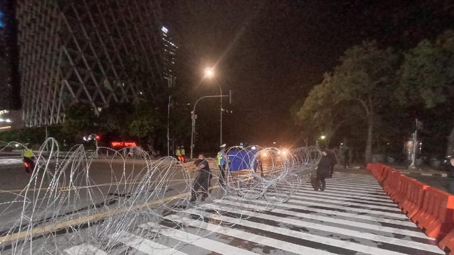 Tidak hanya itu, barikade juga dilapis kawat berduri. Kawat berduri itu membentang sekitar 50 meter.