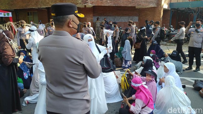"Demo buruh sama mahasiswa boleh pak kemarin. Kita datang jauh-jauh," protes massa.