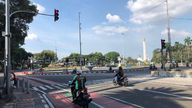 Polisi telah menyingkirkan kawat berduri yang membarikade akses menuju Patung Kuda dan Monas, Jakarta Pusat (Jakpus). Kendaraan mobil dan motor sudah bisa melintas kembali ke Patung Kuda dan Monas serta sebaliknya.