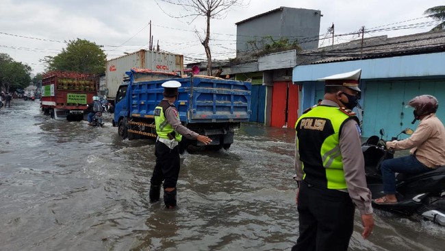 Saat ini sejumlah polisi bersiaga di lokasi yang tergenang banjir rob. Polisi mengatur lalu lintas di lokasi agar tidak terjadi kemacetan.
