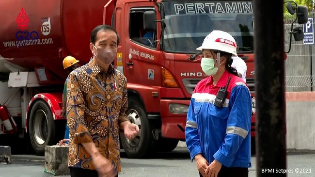 Kegiatan sidak ini dilakukan Jokowi di luar agenda yang sudah dijadwalkan. Di terminal BBM milik Pertamina itu, Jokowi menanyakan soal ketersediaan stok BBM.
