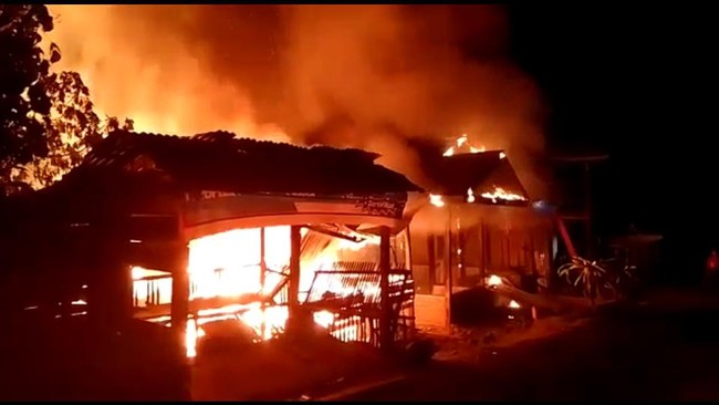 Peristiwa kebakaran menghanguskan tiga rumah semipermanen di Kabupaten Majene, Sulawesi Barat. Dua rumah di antaranya rata dengan tanah.
