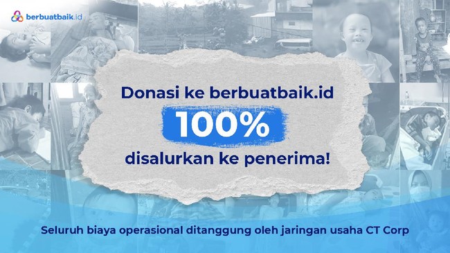 Berbuat baik untuk sesama sekarang makin mudah karena donasi kini bisa disalurkan lewat berbuatbaik.id. Donasi dari kamu 100% akan diberikan ke yang membutuhkan tanpa dikenai biaya pemotongan atau biaya apapun.
