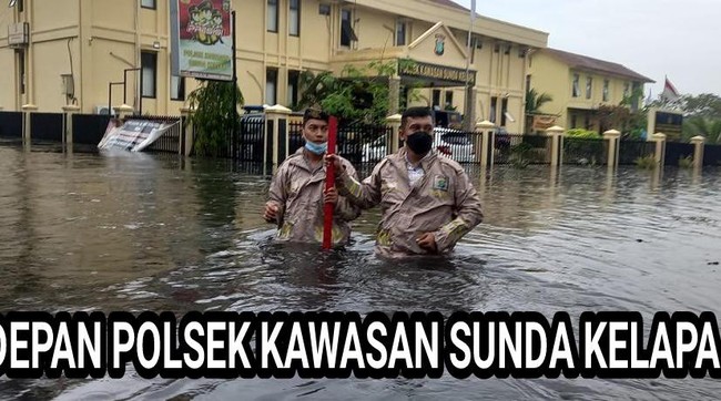 Kemudian, di depan pos utama Pelabuhan Sunda Kelapa, genangan air juga mencapai 50 cm.