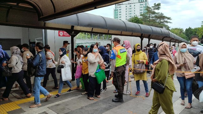 Berdasarkan pantauan detikcom pada Minggu (5/12) sore, penumpang yang membeludak di depan pintu masuk Stasiun Tanah Abang hendak menuju arah Bogor. Tampak sejumlah petugas keamanan stasiun mengatur laju calon penumpang agar tidak membeludak di dalam stasiun.