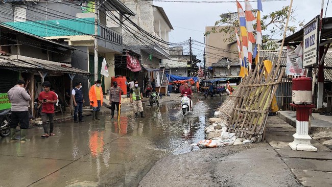Pantauan detikcom pada pukul 13.15 WIB, Minggu (5/12/2021), rob menggenangi jalan di depan Sekretariat RW 022, Jl Dermaga Ujung. Genangan itu pun kemudian berangsur surut dan hingga pukul 15.15 WIB tak tampak lagi rob menggenangi jalan tersebut.