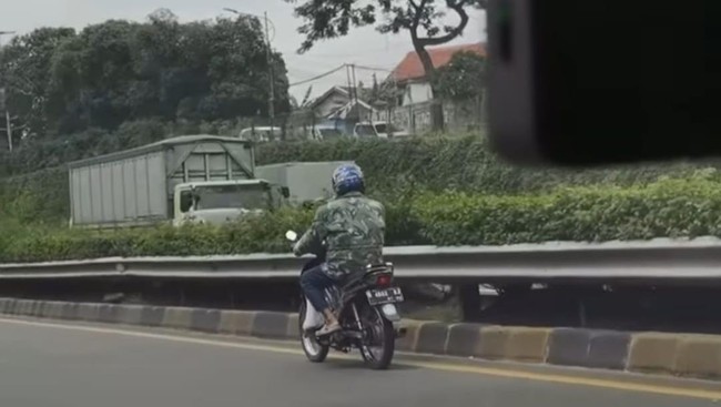 Video seorang pemotor mengaspal di ruas jalan tol menjadi perbincangan warganet. Pengemudi motor berjaket loreng ini terlihat santai berkendara di lajur cepat jalan tol.