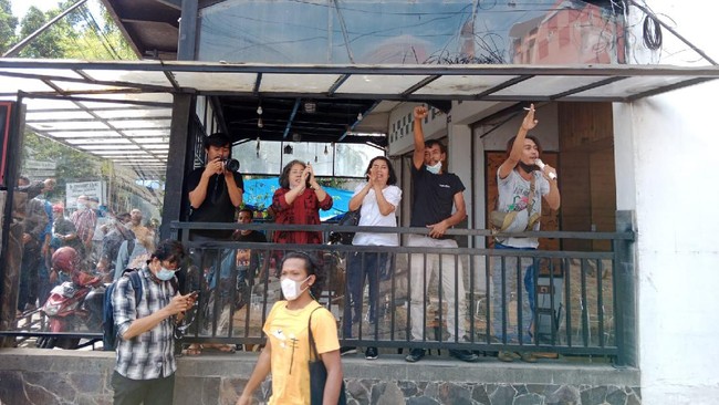 Sempat terjadi adu mulut antara petugas dan warga yang bertahan di bangunan itu. Warga yang mempertahankan bangunan juga sempat terlihat menyampaikan orasi di depan rumah.